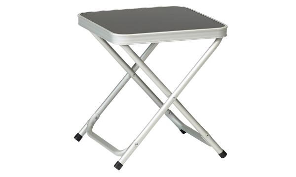 Bordpladen lægges ovenpå den udslåede sidde-/ fodskammel, og så let som ingenting omdannes den til bord.