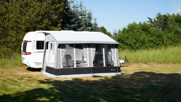 Thanks to their great strength and stability, the Universal 360 and 420 Dawn porches can be put up in all weather conditions – all year round. Two support poles press the sewn-in foam pads securely against the side of the caravan, while click profiles hold the sides directly on the support pole for a perfect seal.