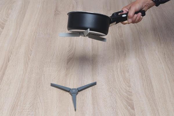 Een opvouwbare onderzetter is ideaal voor op de camping. Je vouwt de onderzetter in elkaar, zodat hij nauwelijks ruimte inneemt. De onderzetter is bovendien magnetisch en volgt de pan als je deze verplaatst.
