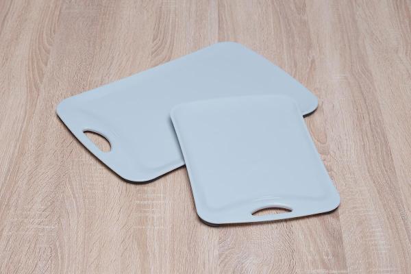 Twee snijplanken met antislip onderkant. Beide snijplanken hebben een hogere rand waardoor sap e.d. niet van de snijplank af kan lopen.