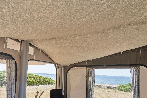 Det er en god idé å installere et termotak, spesielt hvis du camper tidlig på våren eller sent på høsten. Varmeloftet bidrar til å samle opp kondens som kan dryppe ned fra taket. Dette termotaket er spesialdesignet for montering i Ventura Air Dove 350.
