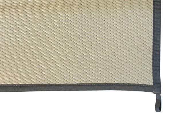 Denna slitstarka markismatta är skapad med fokus på komfort, hållbarhet och funktionalitet under markisen. Den dubbla konstruktionen ger extra styrka och stabilitet så att mattan ligger snyggt och stadigt – oavsett om underlaget är gräs, grus eller asfalt. Markismattan har en vändbar design så att du kan välja vilken färg som ska vara uppåt: varmgrå eller varmbeige – beroende på vad som passar bäst.