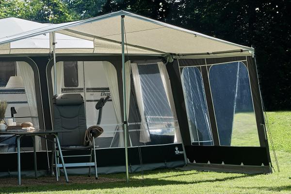 Vacuum or brush awning off when it is dry. Subsequently, wipe with a damp cloth.