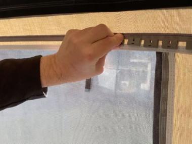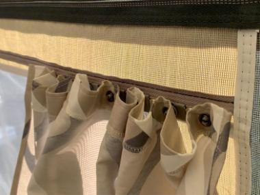 When putting up the awning, it is important to use the sewn-on regulator tab at the two corner legs and middle leg.